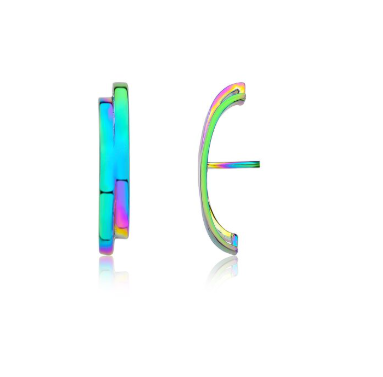 Moderno, vibrante e cheio de personalidade. Este brinco com acabamento iridescente é uma peça contemporânea que combina minimalismo com um toque futurista. Seu design curvo e elegante acompanha delicadamente a linha da orelha, enquanto o efeito multicolorido reflete a luz em tons de azul, rosa, verde e dourado, criando um brilho único a cada movimento. Leve e sofisticado, é o acessório perfeito para quem gosta de joias que fogem do comum e revelam estilo, atitude e originalidade. Uma peça que transforma qualquer look em uma expressão de modernidade. ✨ Um brinco que celebra cor, luz e autenticidade.